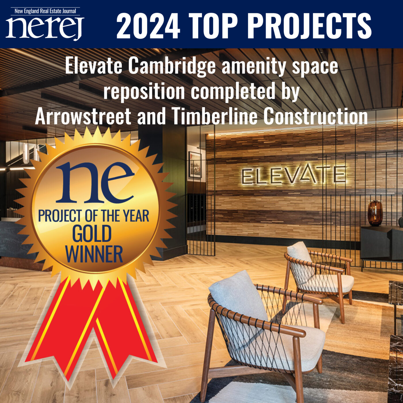 2024 Project of the Year Gold Winner: Elevate Cambridge amenity space reposition completed by Arrowstreet and Timberline Construction