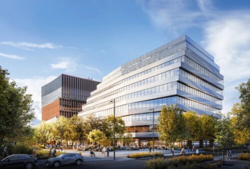 Designed as two interconnected towers linked by a central connector and an activated ground floor, the lab building will provide flexible shell space to accommodate a range of uses, including retail, dining, daycare, and gathering spaces. Level 1 also houses shared amenities and support spaces for lab tenants, while below-grade levels feature parking, bike storage, a fitness facility, and critical MEP/back-of-house functions. Boasting an impressive 510,000 SF of rentable space for R&D tenants, the building stands as a premier destination for innovation, growth, and limitless possibility.